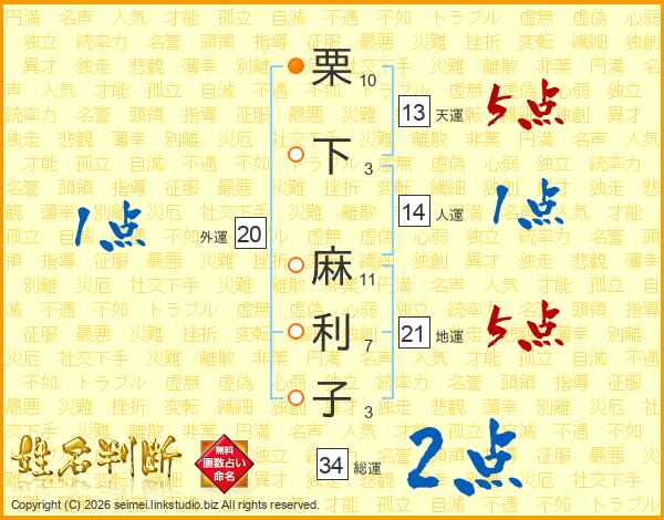 栗(10画)下(3画) 麻(11画)利(7画)子(3画)