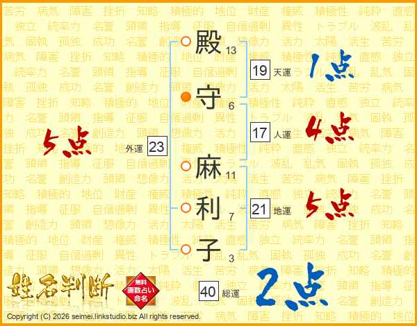 殿守麻利子さんの総運は40画の2点!