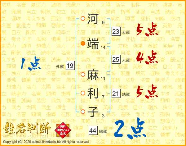 河端麻利子さんの総運は44画の2点!