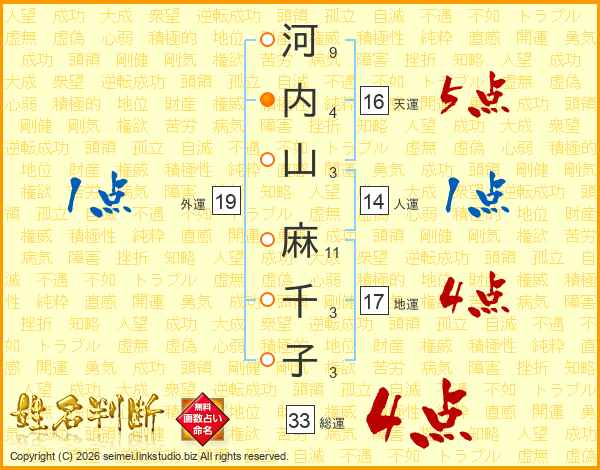 河内山麻千子さんの総運は33画の4点!