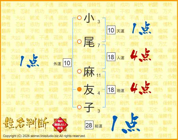 小尾麻友子さんの総運は28画の1点!