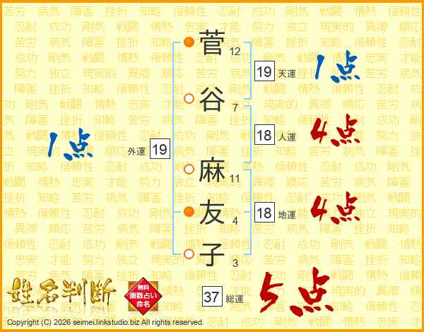 菅谷麻友子さんの総運は37画の5点!