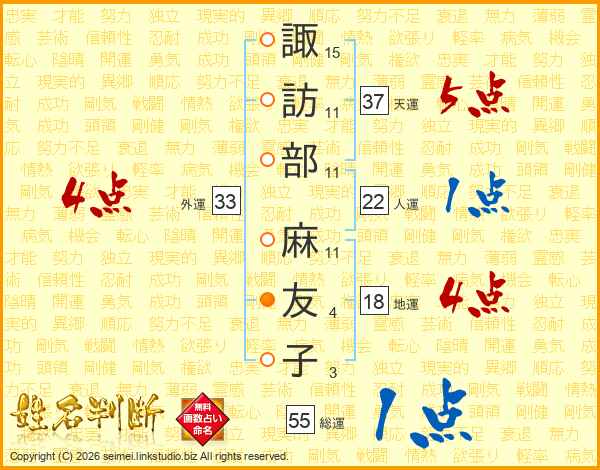 諏訪部麻友子さんの外運は33画の4点!