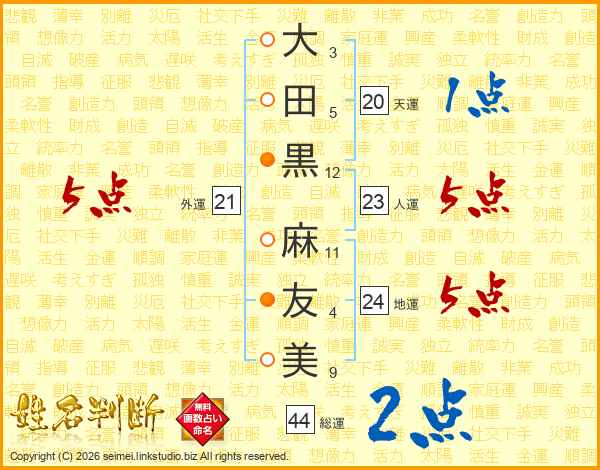 大田黒麻友美さんの外運は21画の5点!