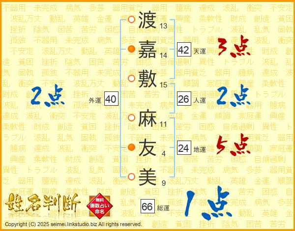 渡嘉敷麻友美さんの総運は66画の1点!