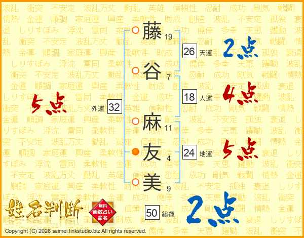 藤谷麻友美さんの外運は32画の5点!
