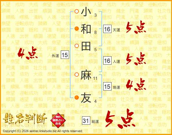 小和田麻友さんの外運は15画の4点!