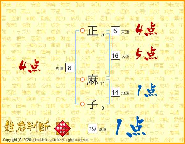 正麻子さんの総運は19画の1点!