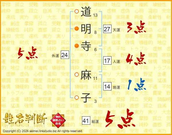 道明寺麻子さんの総運は41画の5点!