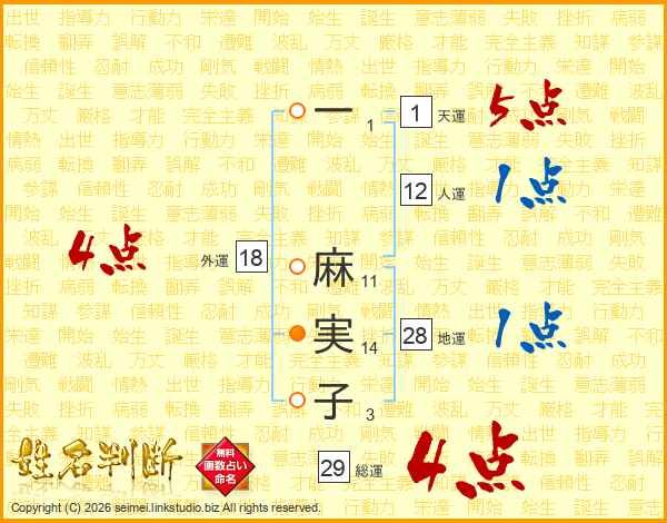 一麻実子さんの外運は18画の4点!