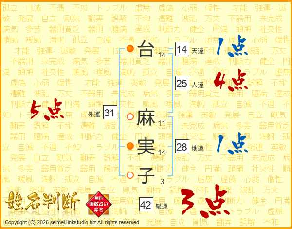台麻実子さんの天運は14画の1点!