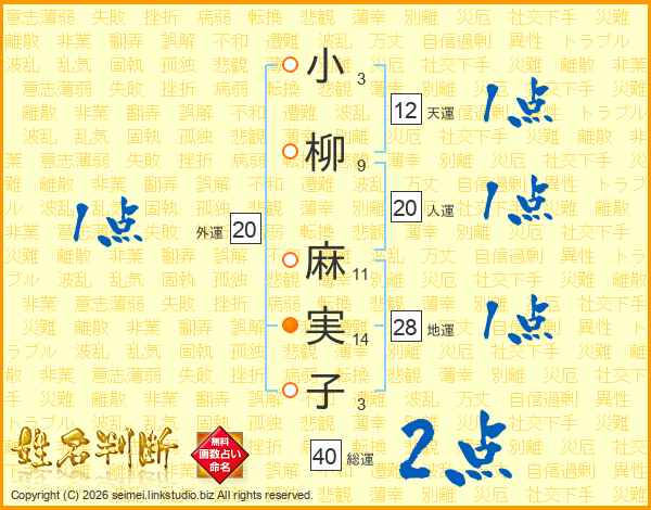 小柳麻実子さんの総運は40画の2点!