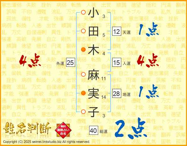 小田木麻実子さんの総運は40画の2点!
