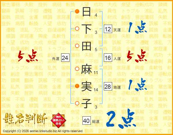 日下田麻実子さんの人運は16画の5点!