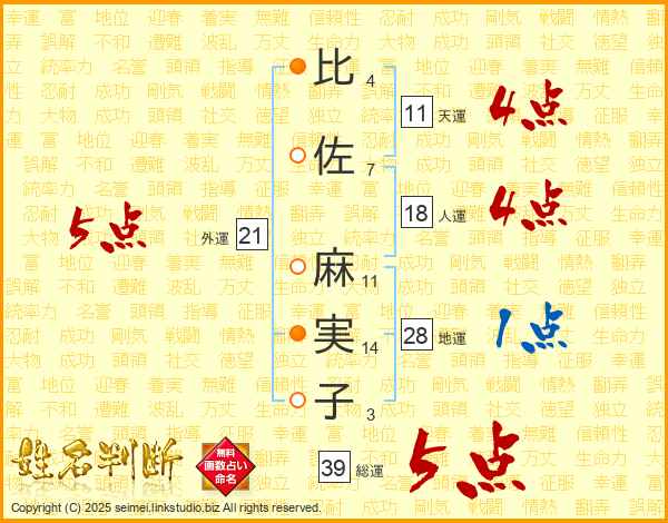 比佐麻実子さんの外運は21画の5点!
