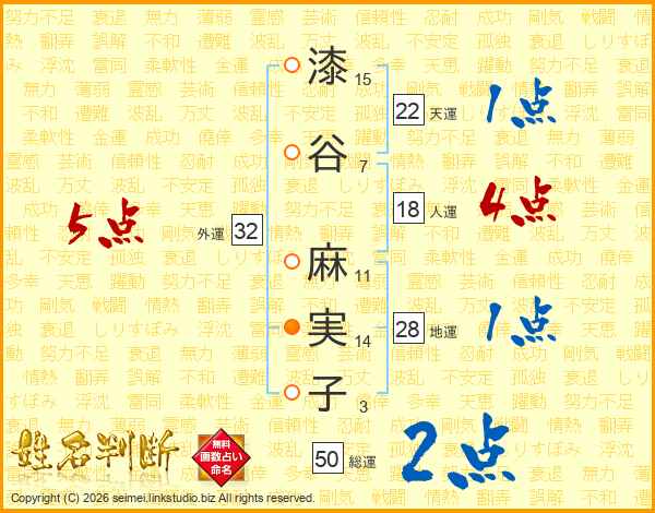 漆谷麻実子さんの外運は32画の5点!