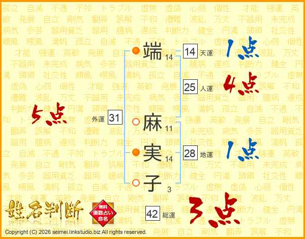 端麻実子さんの総運は42画の3点!