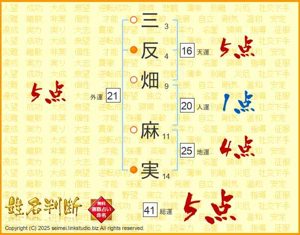 三反畑麻実さんの総運は41画の5点!