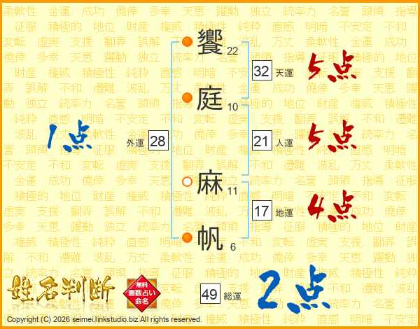 饗庭麻帆さんの総運は49画の2点!