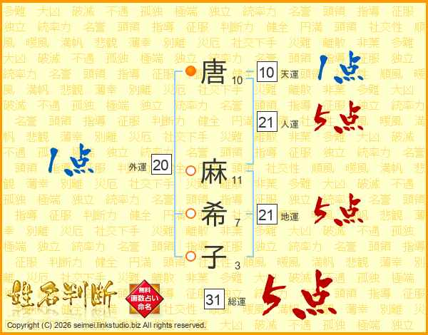 唐麻希子さんの総運は31画の5点!