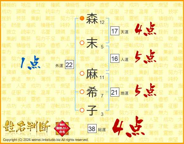 森末麻希子さんの総運は38画の4点!