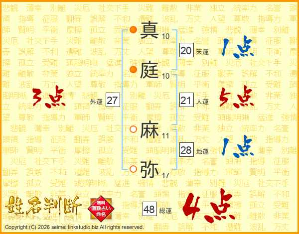真庭麻弥さんの総運は48画の4点!