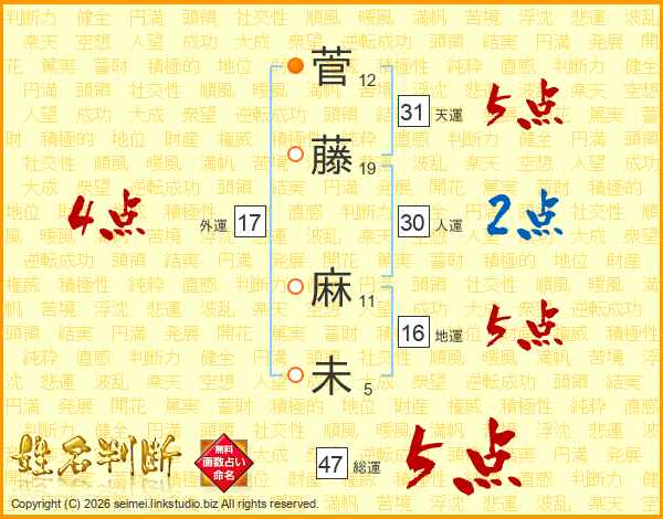 菅藤麻未さんの総運は47画の5点!