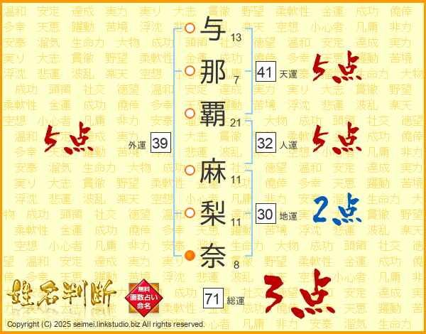 与那覇麻梨奈さんの天運は41画の5点!