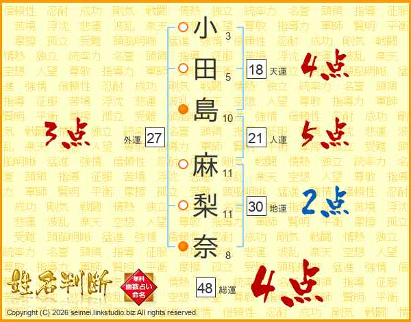 小田島麻梨奈さんの総運は48画の4点!