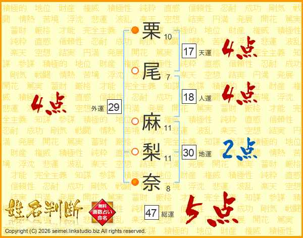 栗尾麻梨奈さんの総運は47画の5点!
