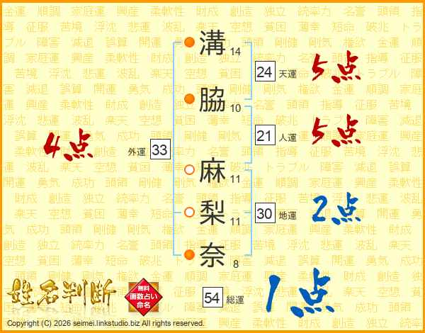 溝脇麻梨奈さんの外運は33画の4点!