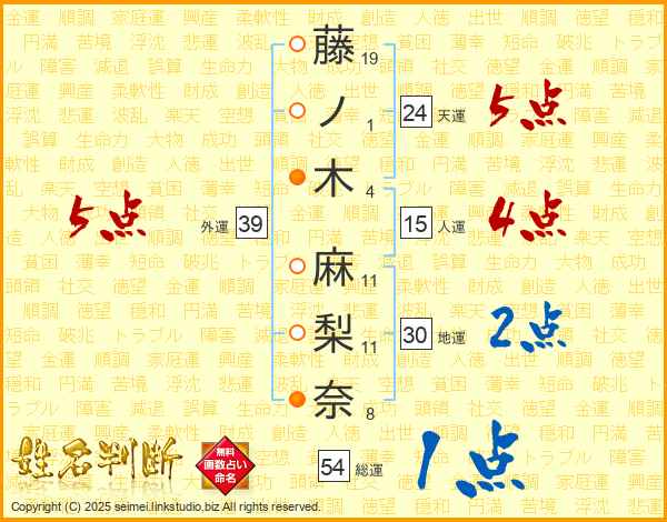 藤ノ木麻梨奈さんの天運は24画の5点!