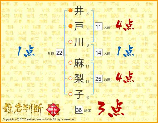 井戸川麻梨子さんの地運は25画の4点!