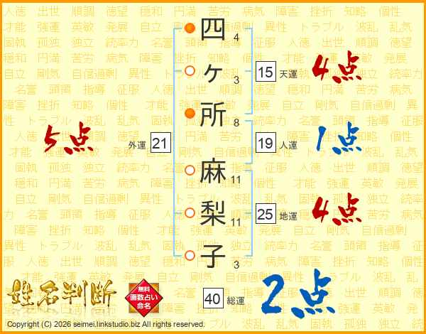 四ヶ所麻梨子さんの外運は21画の5点!