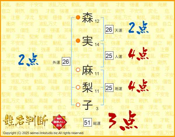 森実麻梨子さんの総運は51画の3点!