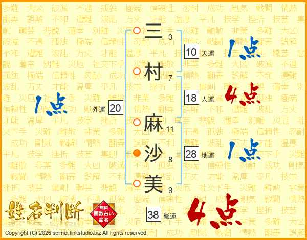 三村麻沙美さんの総運は38画の4点!