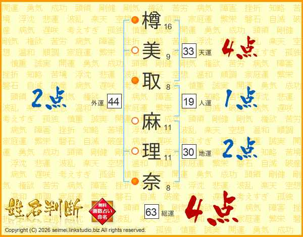 樽美取麻理奈さんの総運は63画の4点!