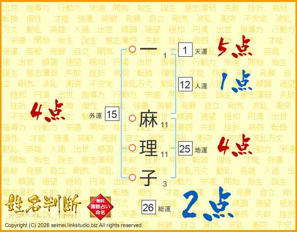一麻理子さんの総運は26画の2点!