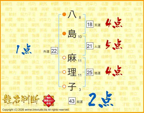 八島麻理子さんの総運は43画の2点!