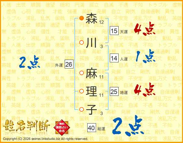 森川麻理子さんの総運は40画の2点!