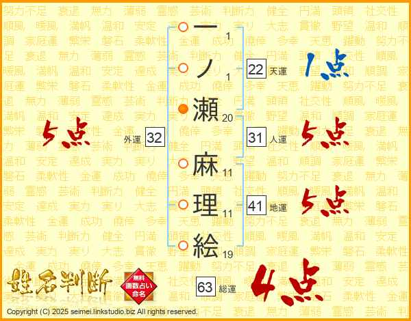 一ノ瀬麻理絵さんの総運は63画の4点!