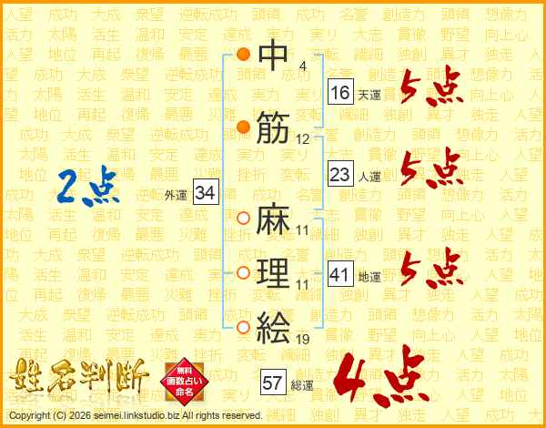 中筋麻理絵さんの総運は57画の4点!