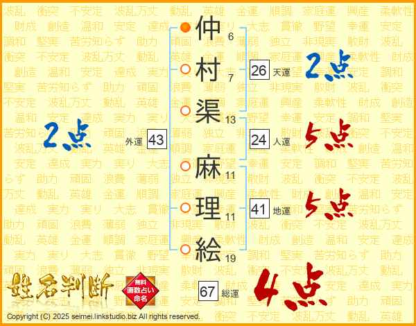 仲村渠麻理絵さんの天運は26画の2点!