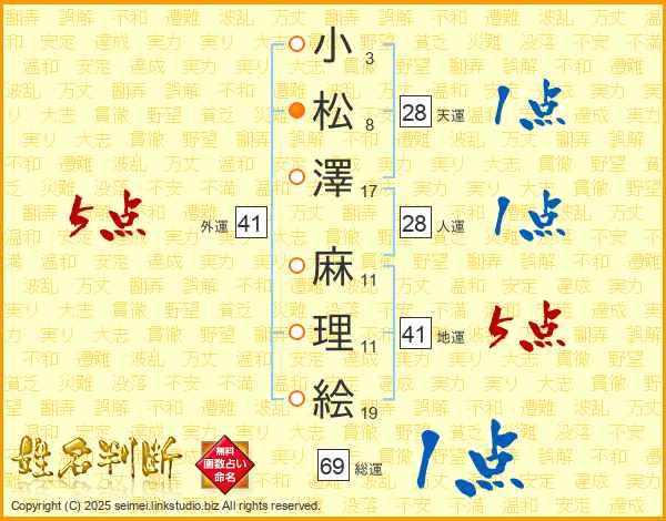 小松澤麻理絵さんの地運は41画の5点!