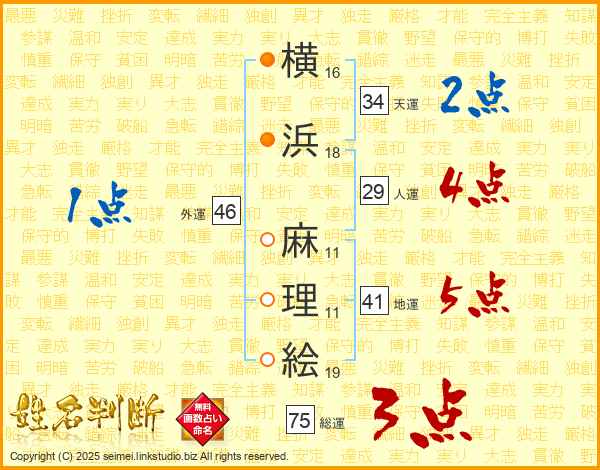 横浜麻理絵さんの天運は34画の2点!
