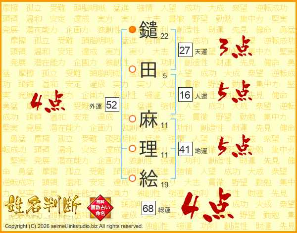 鑓田麻理絵さんの総運は68画の4点!