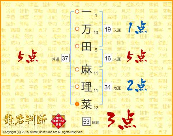 一万田麻理菜さんの外運は37画の5点!