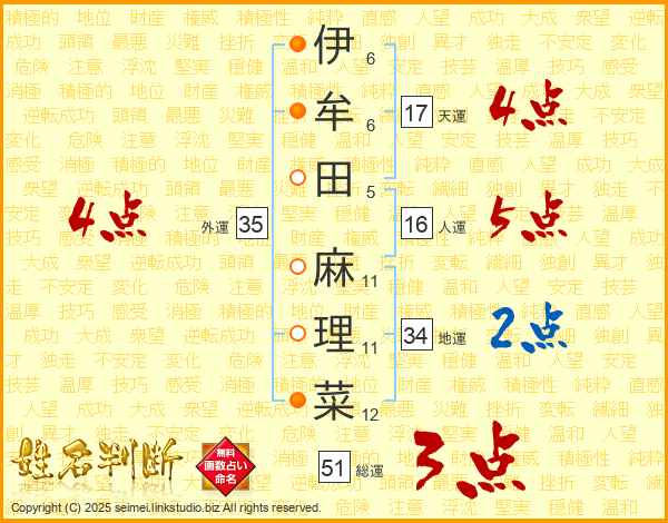 伊牟田麻理菜さんの外運は35画の4点!