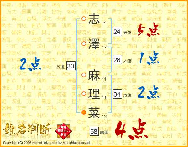 志澤麻理菜さんの総運は58画の4点!