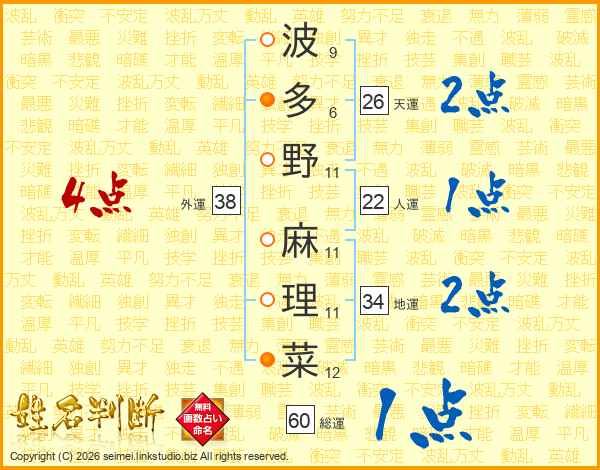 波多野麻理菜さんの外運は38画の4点!